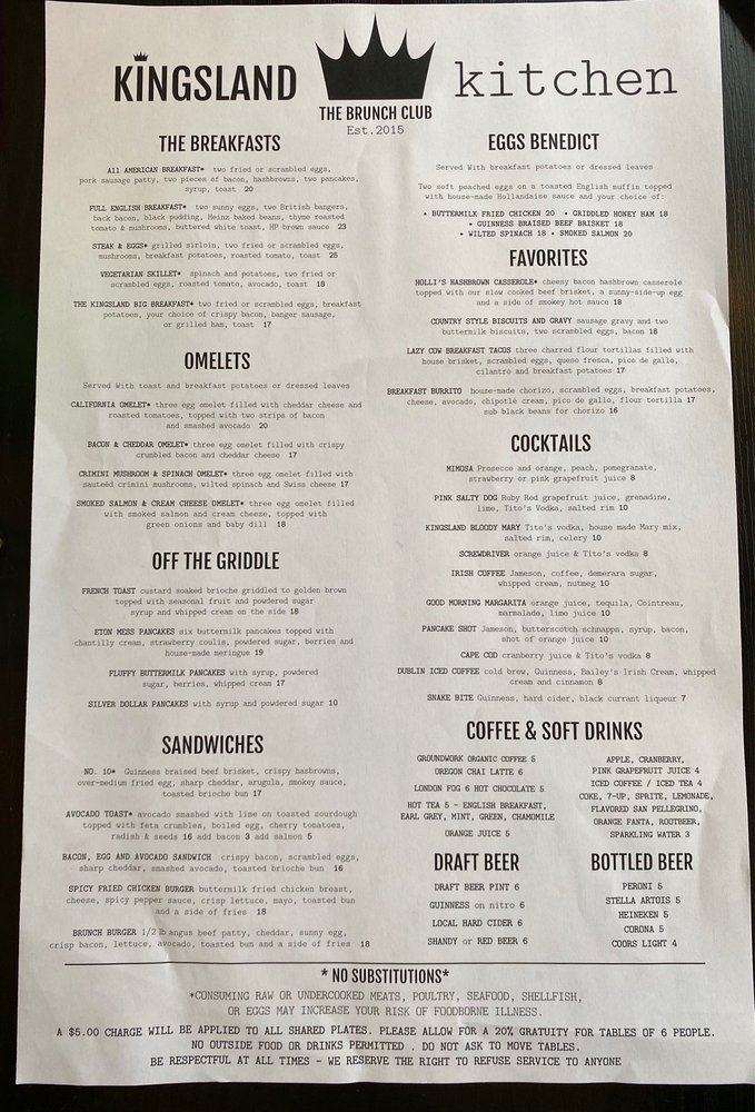 Located in the heart of Portland, Kingsland Kitchen offers a delightful breakfast and brunch experience that leaves diners eager for more. With a menu designed to cater to all tastes, highlights include the rich Fried Chicken Eggs Benedict and the refreshing Smoked Salmon Benedict. Each dish is crafted with care, featuring fresh ingredients and house-made sauces that elevate traditional favorites.